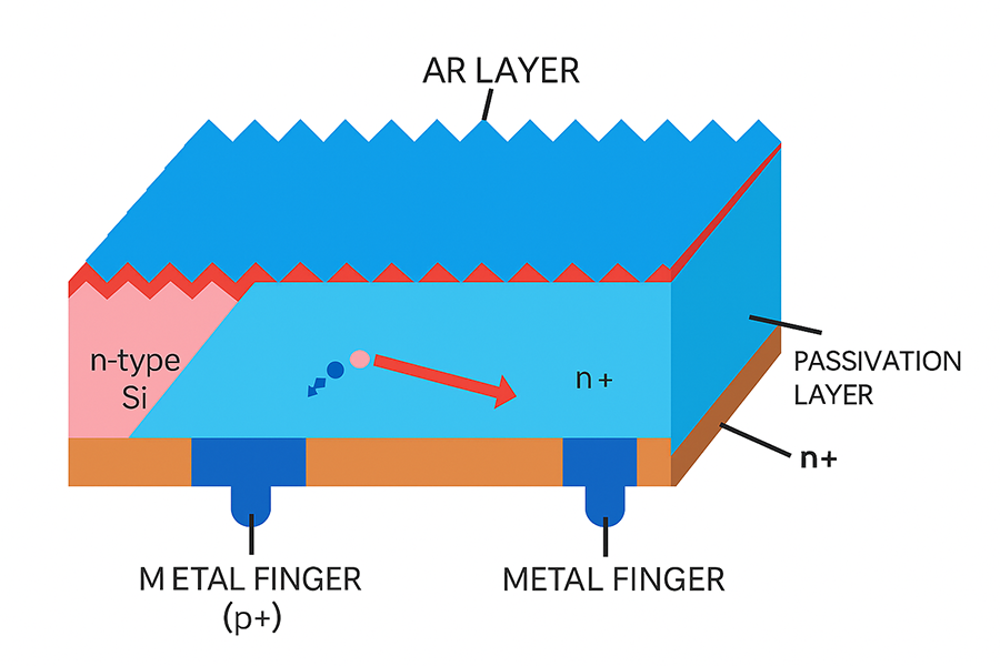 | Estructura y costos | Estructura de contacto trasero completo; proceso complejo, costos más altos | Diseño con electrodos frontales; compatible con líneas PERC; excelente relación calidad-precio |